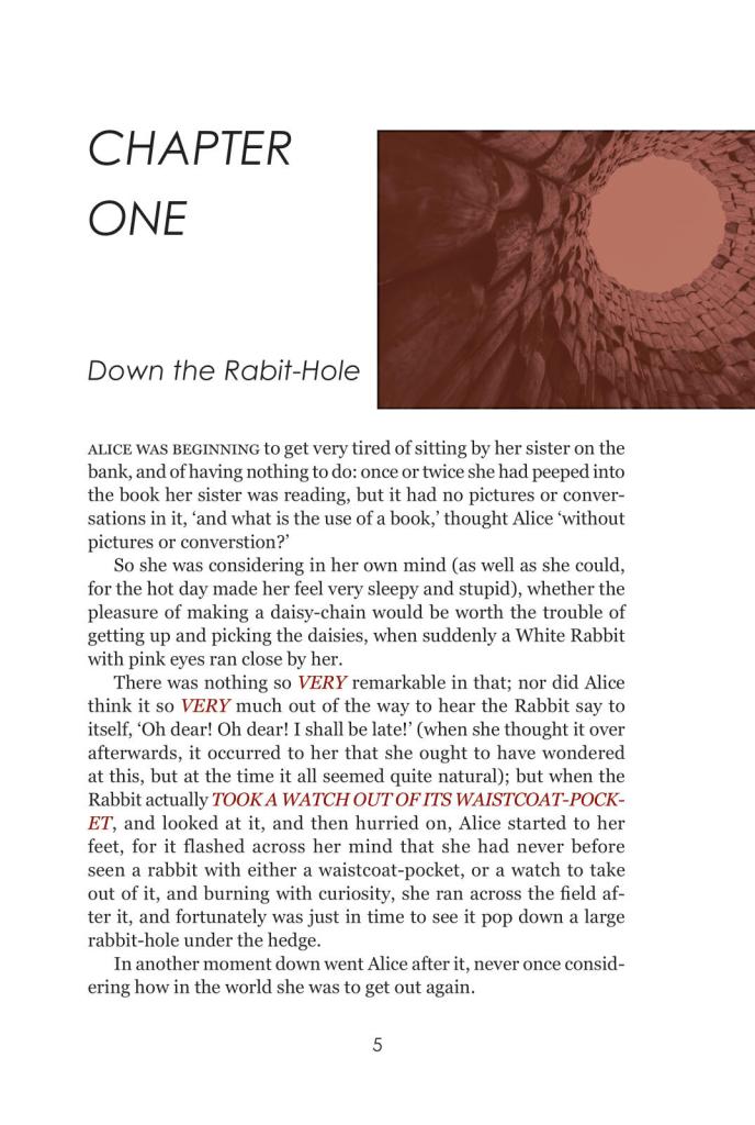 Check out Alex’s final Print Design assignment: a redesign and reformat of Alice in Wonderland‘s first 3 chapters. The piece was also printed and hand-bound.